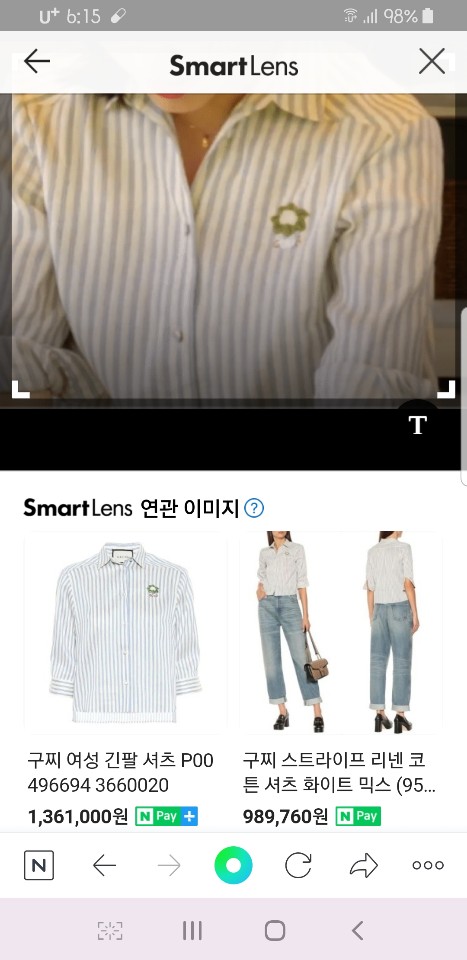 궁금한 의류 찾기는 정말 네이버 그린 닷 스마트렌즈가 편한 것 같긴합니다.