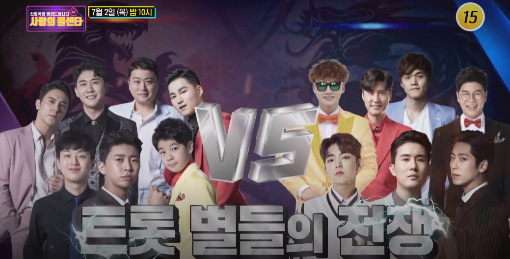 사랑의 콜센타 7월 2일은 미스터 트롯 톱 7과 현역 7이 경쟁을 합니다.