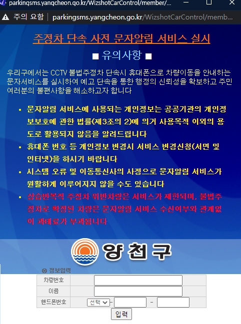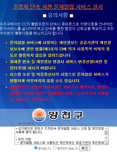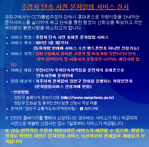 관악구에 주정차단속 문자알림 등록을 해놓았지만, 양천구에서는 알림이 오지 않습니다.