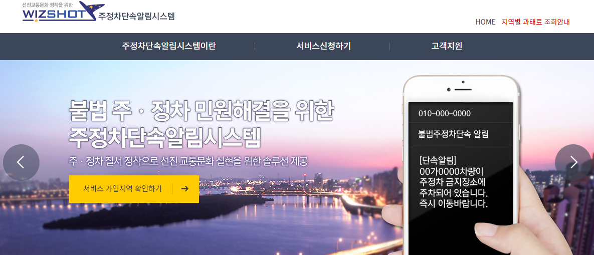 구청과 연계해서 내 차가 주정차 단속 지역에 있다면, 문자로 알려주는 서비스가 있습니다.