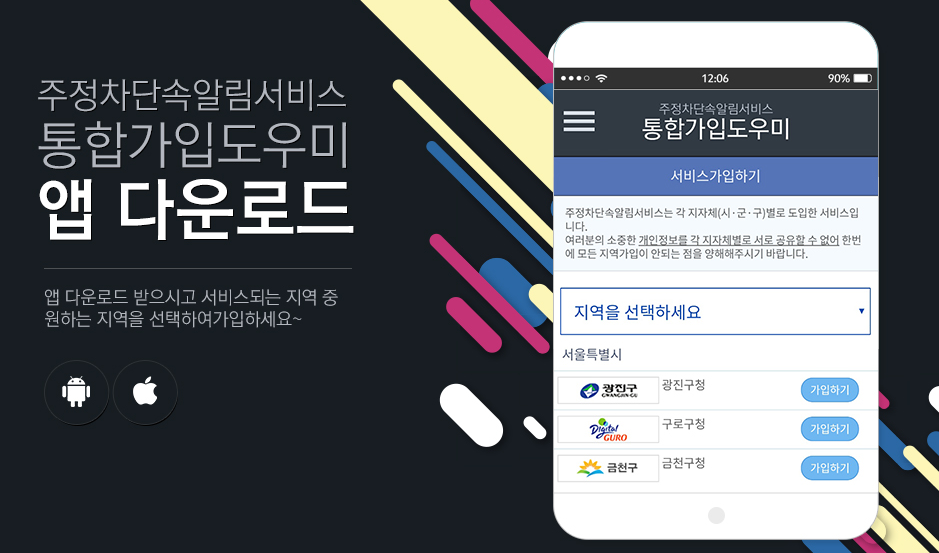 구글 플레이 또는 앱스토어에서 주정차단속 알림서비스라고 입력하면 나옵니다.