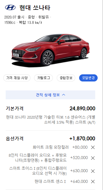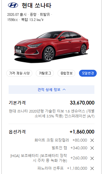현대 자동차 신차 가격표 뿐만 아니라 대부분의 자동차 가격표에는 옵션이 빠져있습니다.