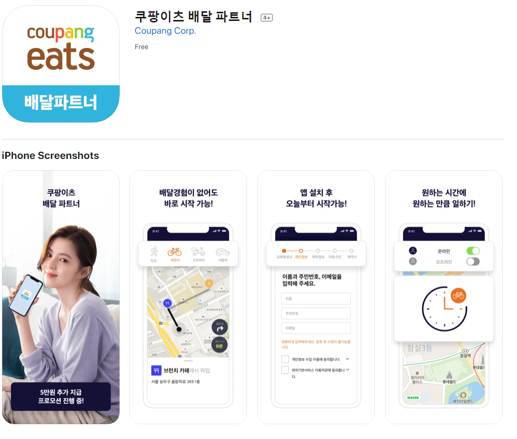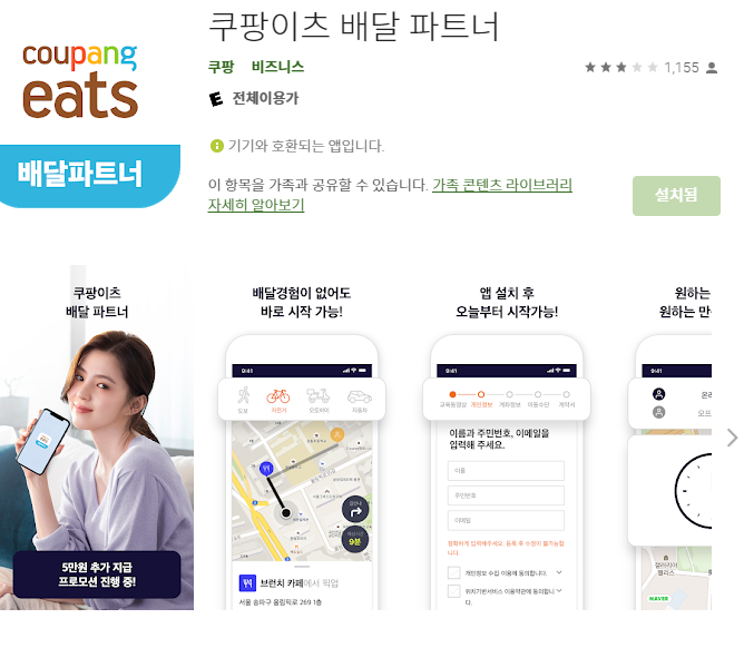 쿠팡 이츠 배달 파트너 가입하려면 앱을 받아서만 가입할 수 있습니다.
