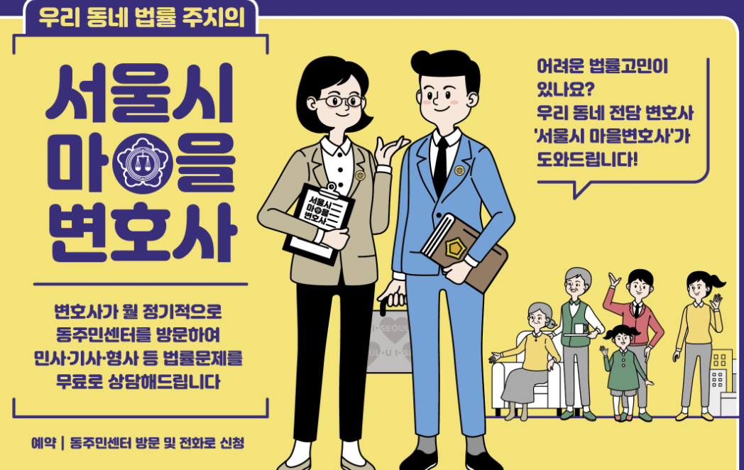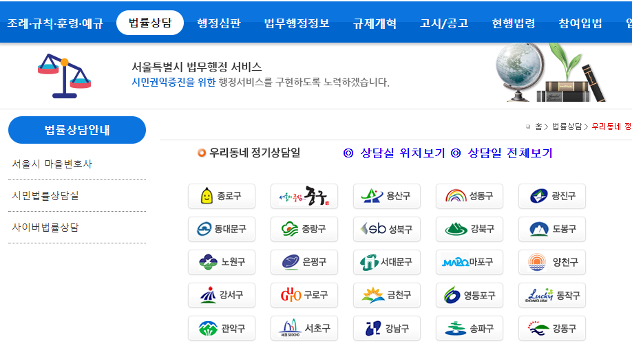 서울시의 경우 서울특별시 법무행정서비스에 있는 법률상담으로 가시면 이용가능합니다.