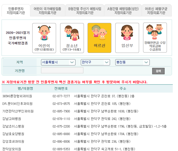 중요한 것은! 확인하고 바로 가지 마시고, 전화로 독감 무료 접종 가능한지 문의하신 다음에 가시기 바랍니다.