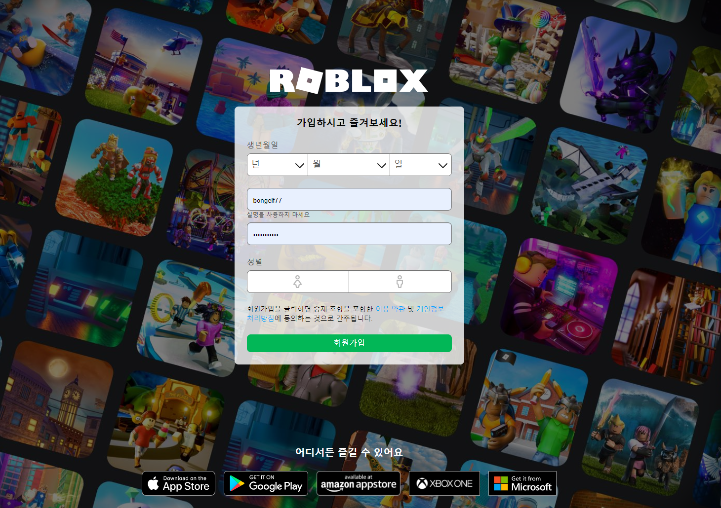 로블록스 게임하기 그 첫번째는 바로 회원가입을 해야 합니다.