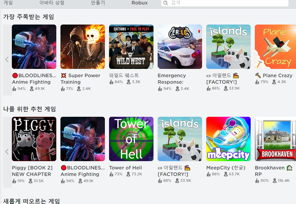로블록스 홈페이지 게임 탭에서 인기 게임 순서를 보고 고르시면 좀 더 편할 것입니다.