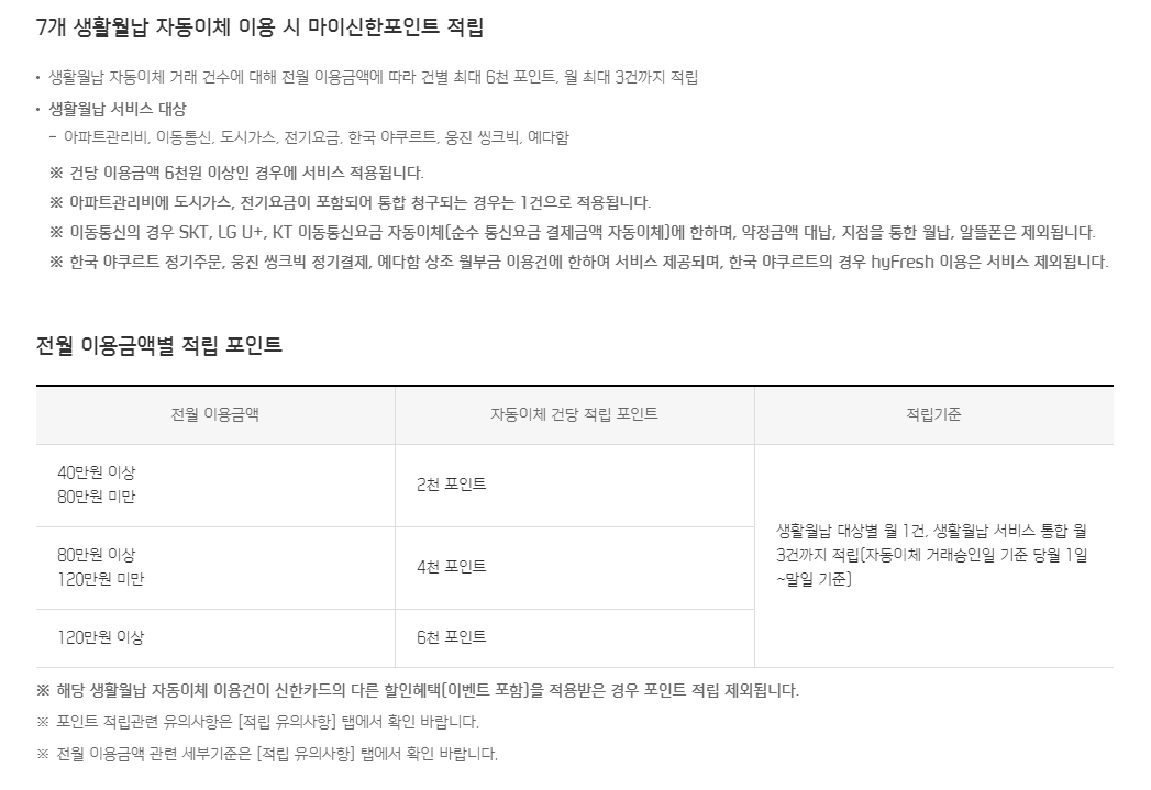 신한카드 딥원스는 아파트 관리비를 포함하는 생활 월납 서비스에 대해 최대 6천 포인트를 제공합니다.